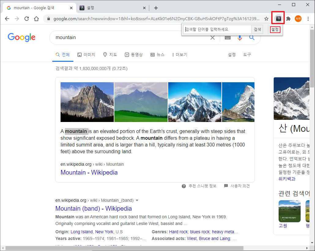 네이버 영어사전 확장프로그램의 설정을 눌러줍니다.