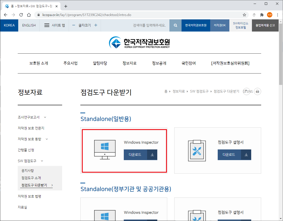 프로그램 다운로드 주소 : www.kcopa.or.kr/lay1/program/S1T239C242/checktool/intro.do