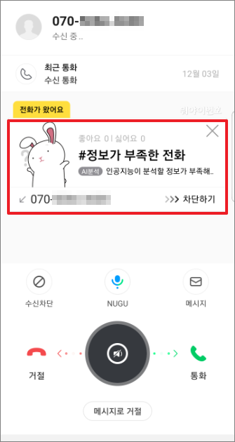 일부 전화번호는 스마트폰 자체에서도 스팸전화라고 표시가 되기는 하지만 정보가 부족한 경우가 있습니다.