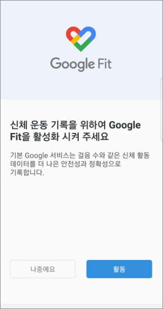 신체 운동기록을 위해서 Google Fit를 활성화 시켜줍니다.