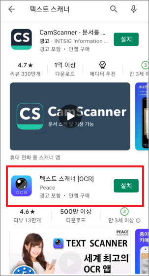 그럼 텍스트스캐너[OCR]를 다운로드 하여 사용까지 해보도록 하죠..