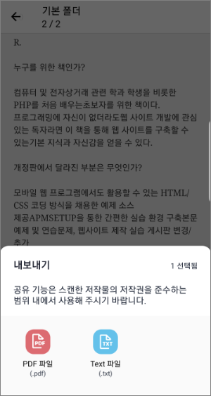 내보내기를 누르면 PDF나 Text파일로 저장이 가능합니다.