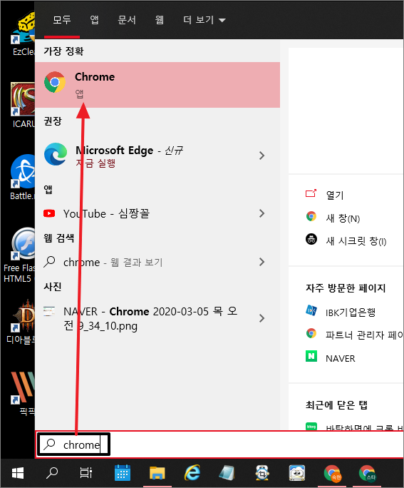 바탕화면에 크롬 바로가기 단축아이콘 만들기