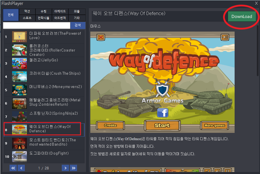 윈도우용 플래시게임 모음 어플로 용량은 12mb 밖에 되지 않는 아주 작은 프로그램입니다.