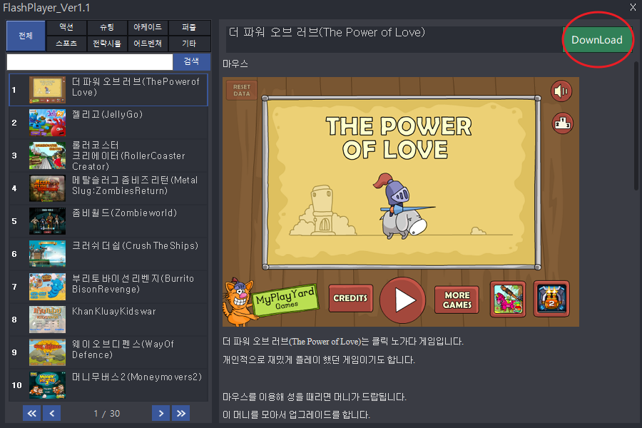 더 파워 오브 러브(The Power of Love)를 플래시플레이어에서 실행해보죠..