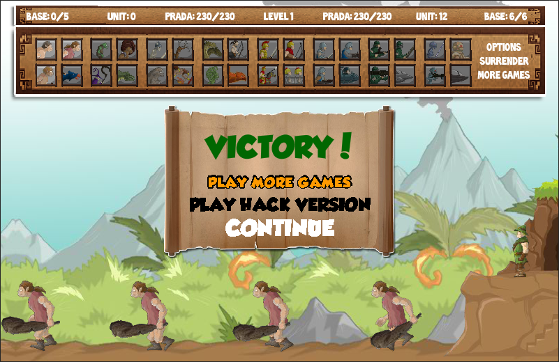 유닛 출격 시스템 화면 하단의 유닛 아이콘을 클릭하면 해당 유닛이 출격합니다. 출격한 유닛은 자동으로 적진을 향해 진격하며 전투를 벌입니다. 유닛은 Prada(자금)를 소모해 출격하므로 자금 관리가 중요하며 시대 진화에 따라 더 강력한 유닛이 해금됩니다.