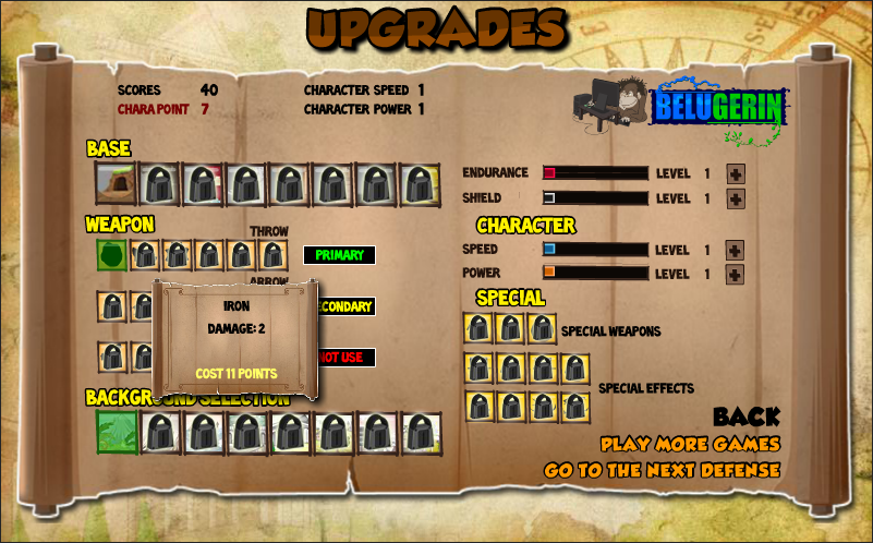 - 레벨 클리어 후 획득한 포인트로 캐릭터와 유닛을 업그레이드합니다.