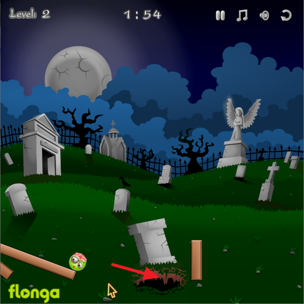 묘지에서 탈출한 좀비들을 다시 땅속으로 돌려보내야 한다. 나무막대와 벽돌을 클릭해 제거하고 체인을 끊어 좀비가 구멍으로 굴러 떨어지도록 경로를 설계하는 물리 퍼즐게임이다. 단순한 클릭 한 번이지만 오브젝트 제거 순서와 타이밍이 핵심인 두뇌게임이다.