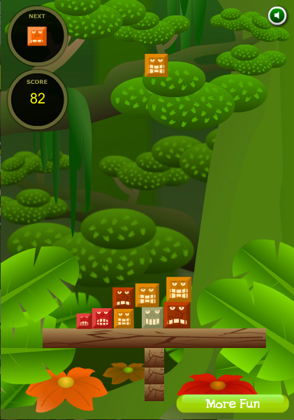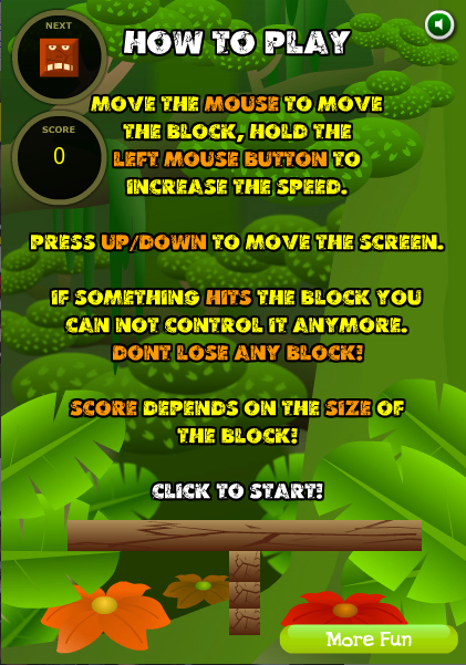 통나무 위에 마우스를 좌우로 움직여 위치를 조정하고 왼쪽 버튼을 홀드하면 빠르게 낙하하는 블록을 하나씩 쌓아 좌우 균형을 유지하며 최대한 높은 탑을 만드는 게임으로, box2D 물리엔진이 적