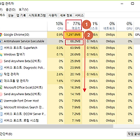 작업관리자의 형태또한 윈도우10에서 변경이 되었습니다.