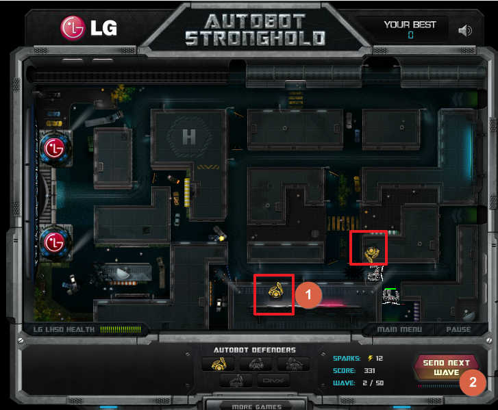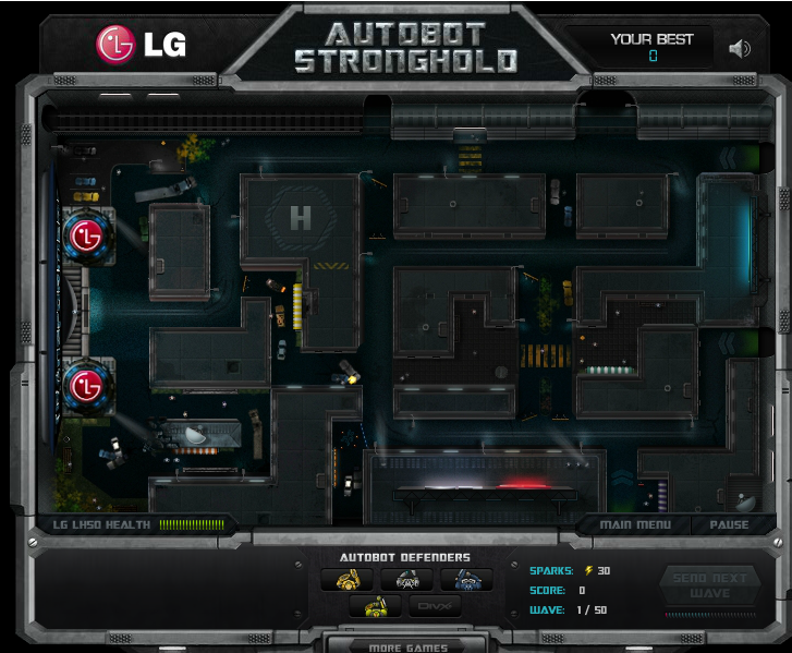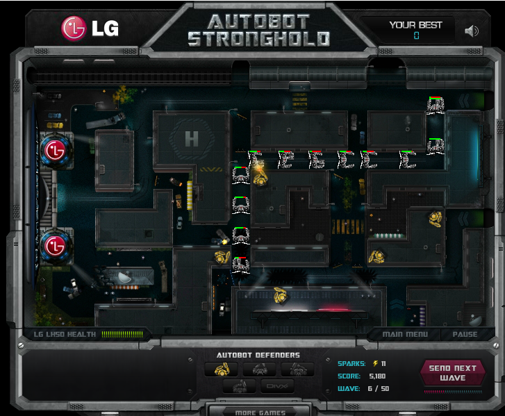 오토봇 스트롱홀드 트랜스포머 디펜스게임의 메인게임화면입니다.