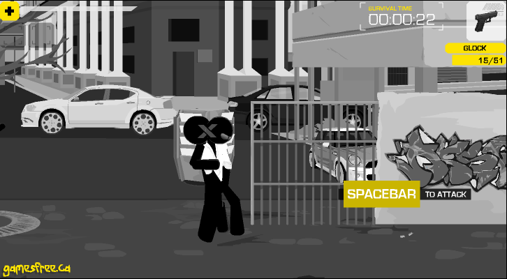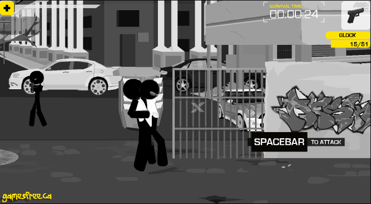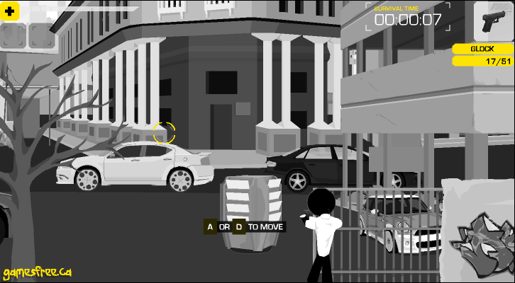 마우스로 적을 겨냥하여 쏘면 되며 가끔 적이 다가와서 껴안고 있을때가 있습니다.