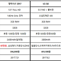| LG G6의 닮은꼴 중저가 LG Q6와 갤럭시J7 스펙비교 (0) | 2017.08.05 |
