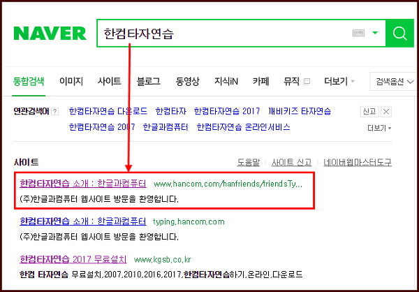 네이버 검색창에서 한컴타자연습을 누르시면 됩니다.