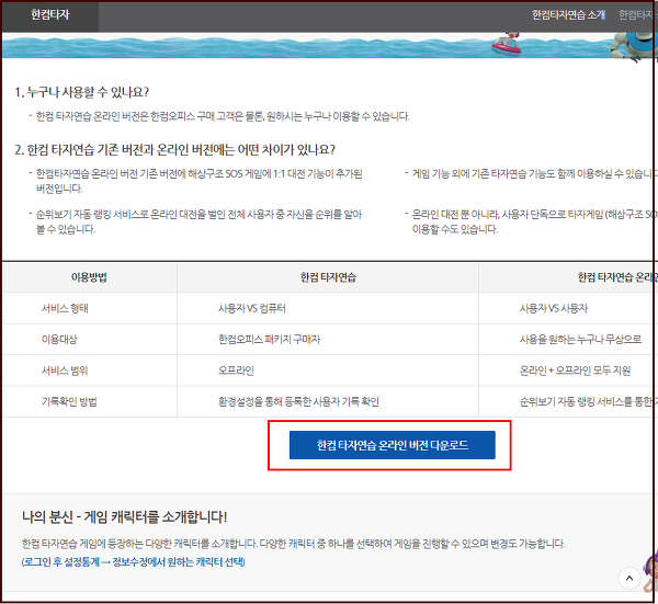 조금 아래로 내리면 한컴타자연습 온라인버젼 다운로드가 있습니다.