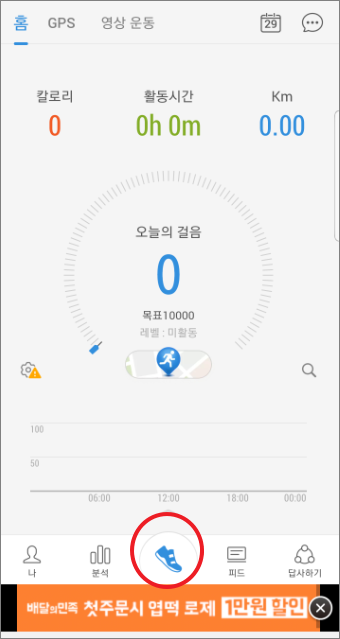 기본 걷기로 되어 있고 시작을 누르면 지금부터의 운동이 기록이 됩니다.