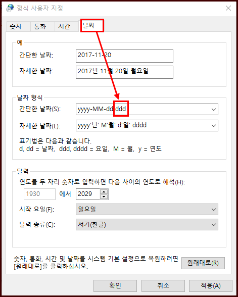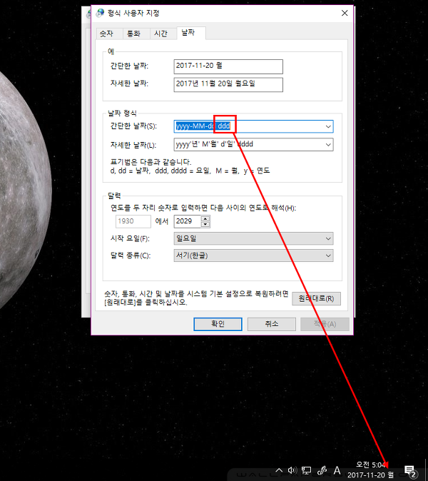 윈도우10 작업표시줄 요일표시 방법