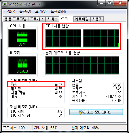 먼저 자신의 pc의 상태를 먼저 알아야 합니다. cpu와 램에 대해서 상펴보죠