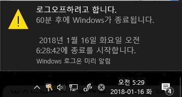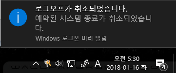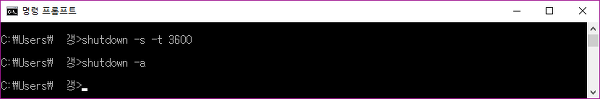 이 명령어를 취소할려면 shutdown -a를 입력합니다.