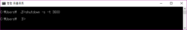 shutdown -s -t 3600 이라고 입력하면 1시간뒤에 종료하라는 명령어입니다.