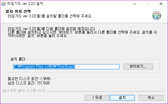 ▼ 타임가드의 실제 설치용량은 1.9MB입니다.