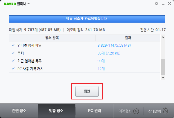 아주 간단히 원클릭으로 처리해주는 프로그램이 바로 네이버클리너입니다.