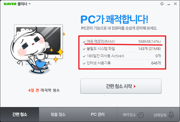 네이버클리너 - pc최적화및 메모리 최적화