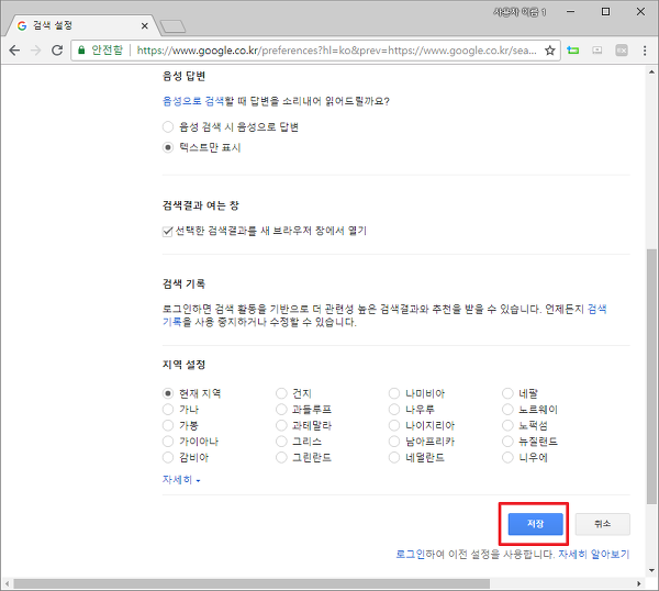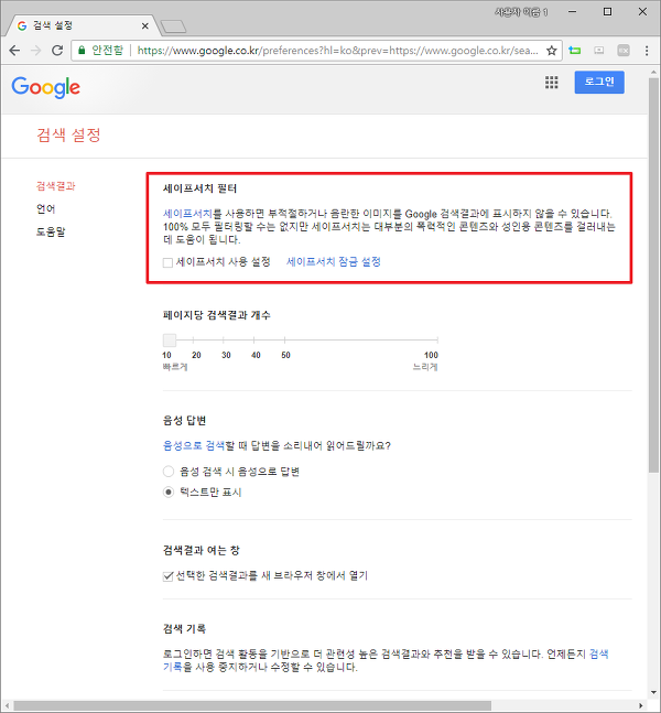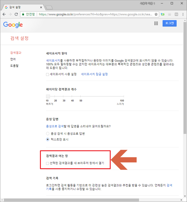 구글 검색 클릭시 새탭에서 열기 및 세이프서치 해제