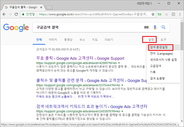 이런경우 구글의 검색환경 설정으로 가셔서 설정을 하시면 됩니다.