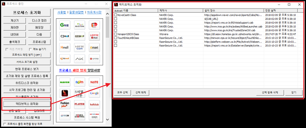 프로세스클린의 프로세스 최기화를 하게 되면 현재 열려져있는 모든 창이 다 닫깁니다.