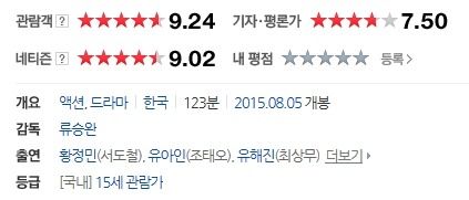 베테랑은 관람객평점도 상당히 높았던 영화입니다.
