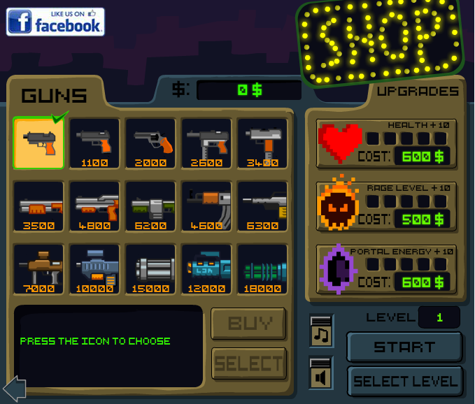 시작과 동시에 상점이 보여집니다.
