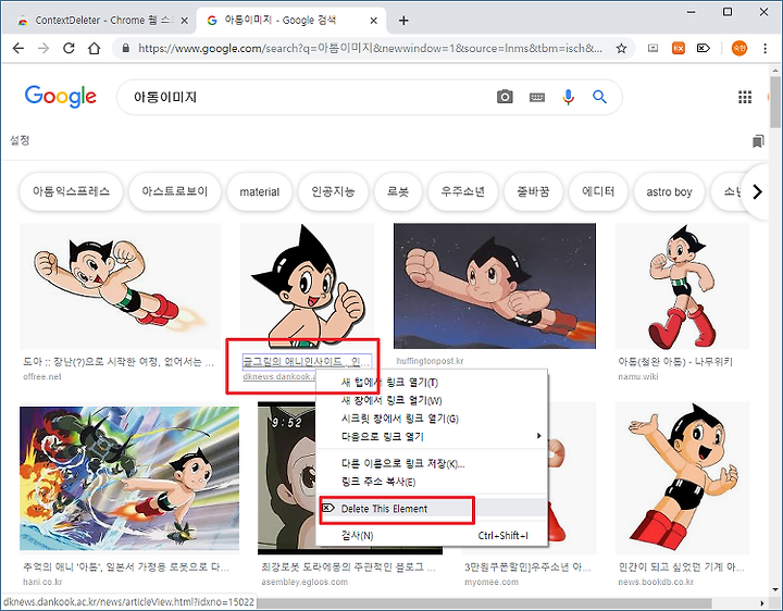 주소창 옆에 ContextDeleter의 아이콘이 설치된것이 보입니다.