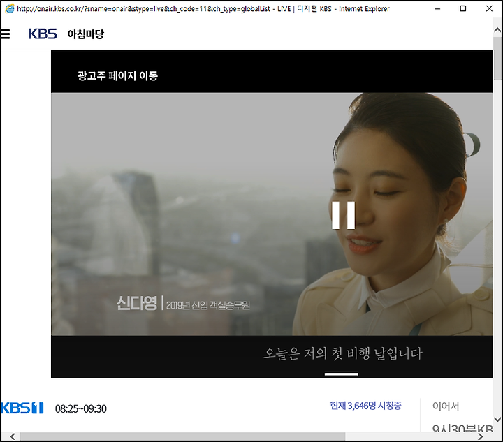 익스플로러의 창이 하나 열리면서 해당 방송의 링크가 열립니다.