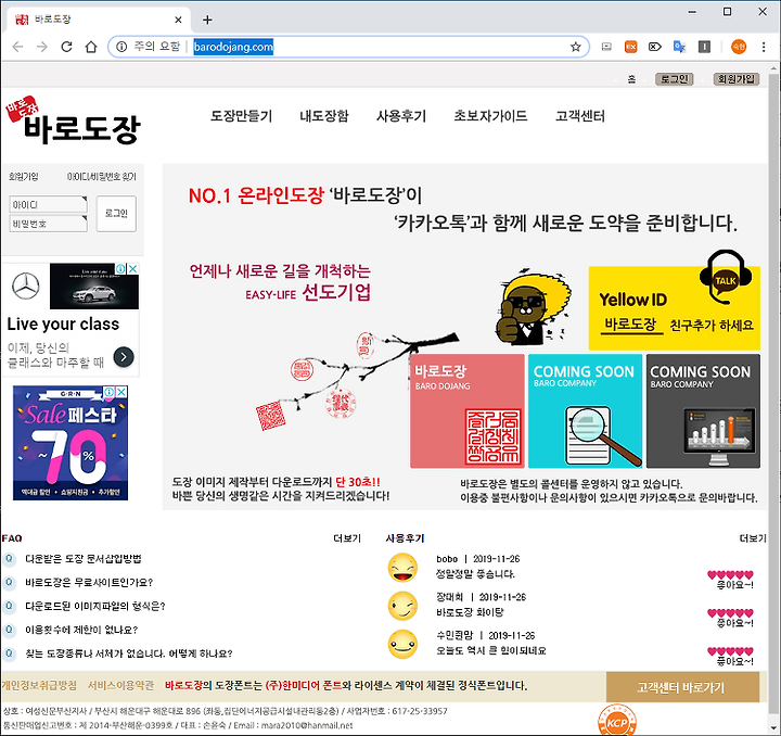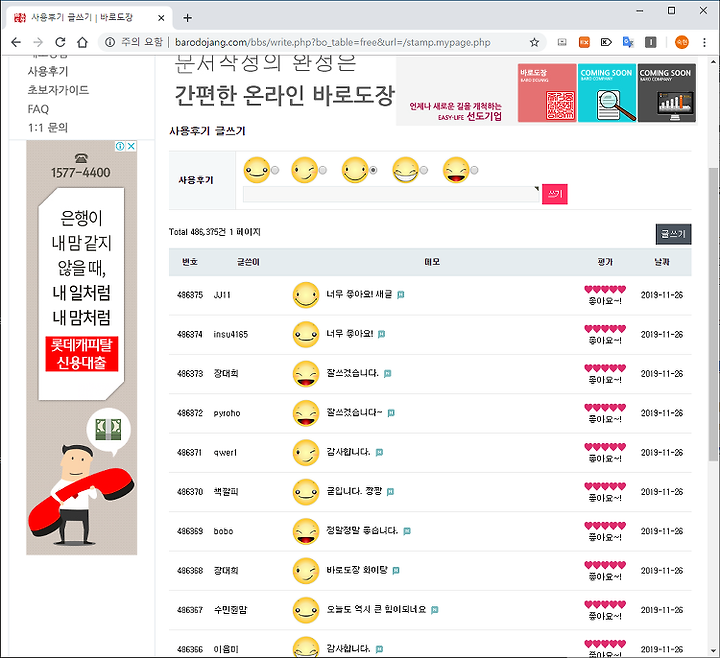 오늘 소개를 하는 사이트는 [바로도장]이라는 사이트로 무료로 도장을 만들어 사용할수 있으며 최대 5개까지 저장을 해놓을수 있습니다.