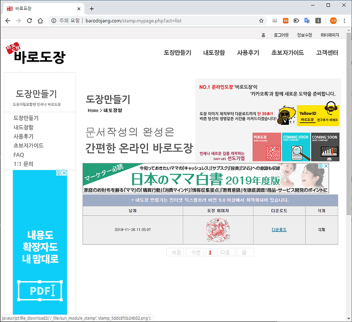 2018/07/16 - [컴퓨터정보] - 인터넷 무료도장 만들기