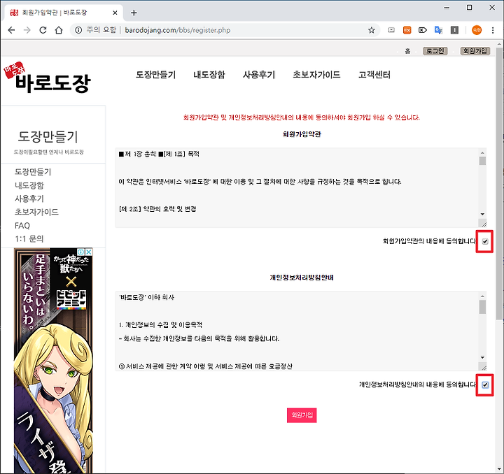 회원가입이 되었다면 이제 도장만들기를 해보죠.