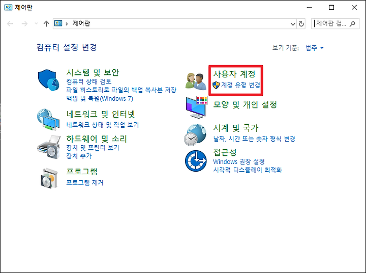 제어판에서 사용자계정을 선택합니다.