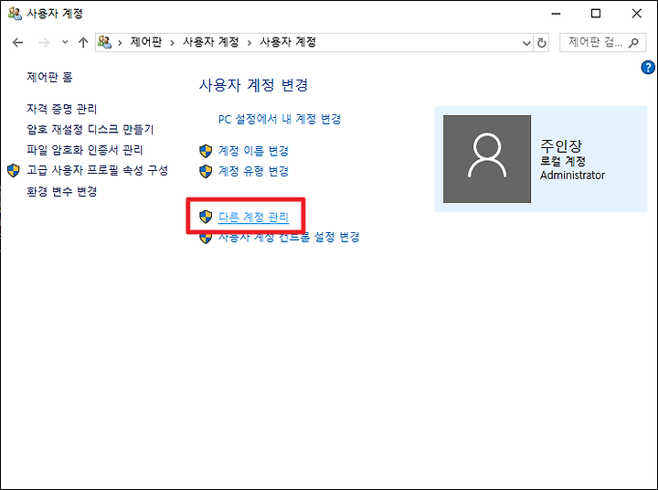 이번에는 다른계정 관리를 누릅니다.